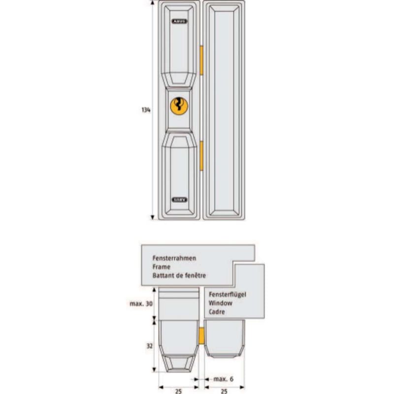 Fenster-Zusatzschloss mit 2 verkrallenden Stahlriegeln, Verriegelung durch Schlüssel.