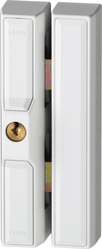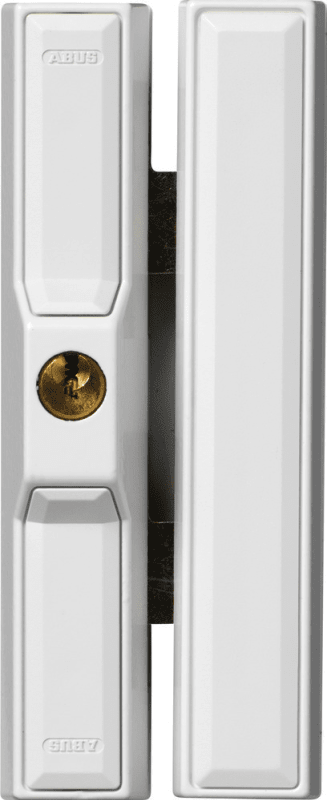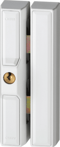 Fenster-Zusatzschloss mit 2 verkrallenden Stahlriegeln, Verriegelung durch Schlüssel.