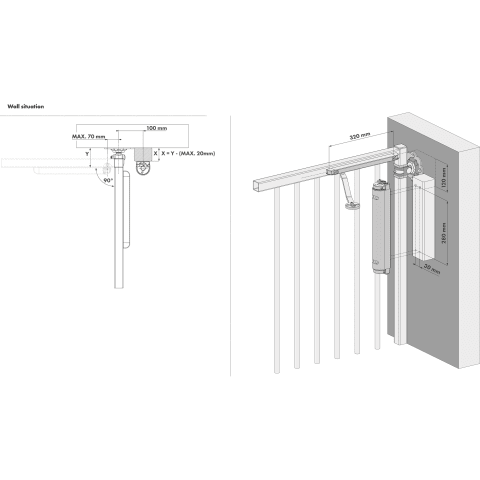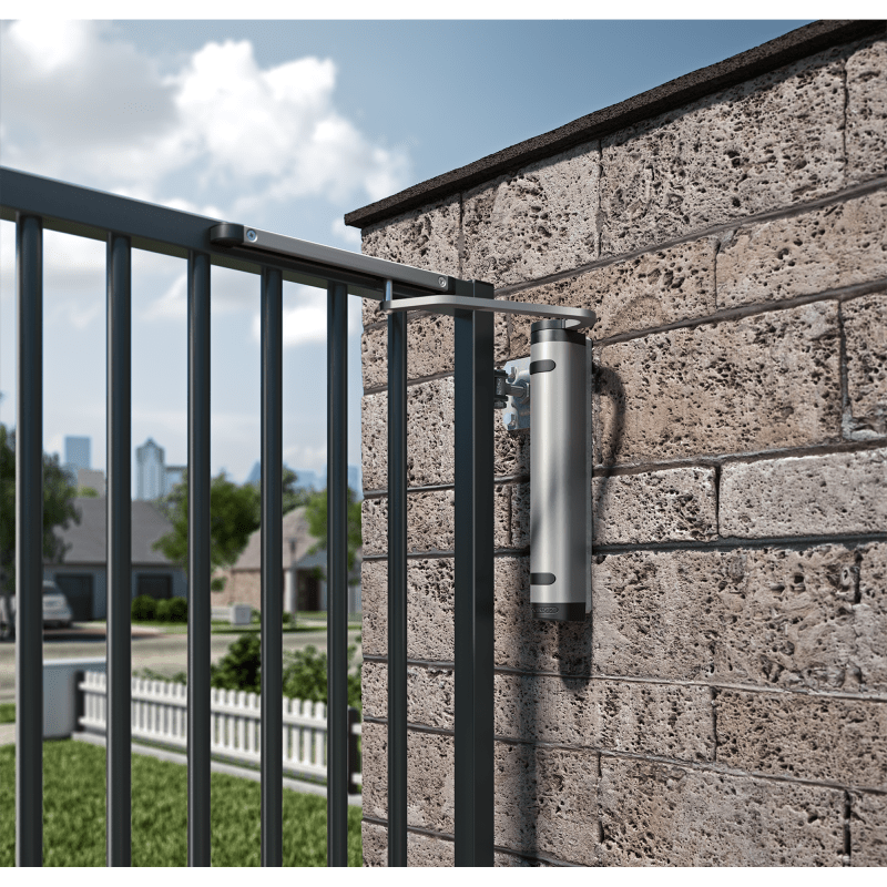 KRAFTVOLLER UND VIELSEITIGER HYDRAULISCHER TORSCHLIEßER ZUR WANDMONTAGE Der Verticlose-2-Wandtorschließer wurde speziell für die Wandmontage entwickelt, bei der der Türschließer selbst in einem Winkel von 90° zum Tor steht. Der speziell entwickelte Arm dreht sich um die Wand oder den Pfosten und sorgt für einen großen Öffnungswinkel. Der ästhetisch, eloxierte Aluminium-Torschließer mit Hightech-Innenkomponenten hat eine außergewöhnlich lange Lebensdauer.