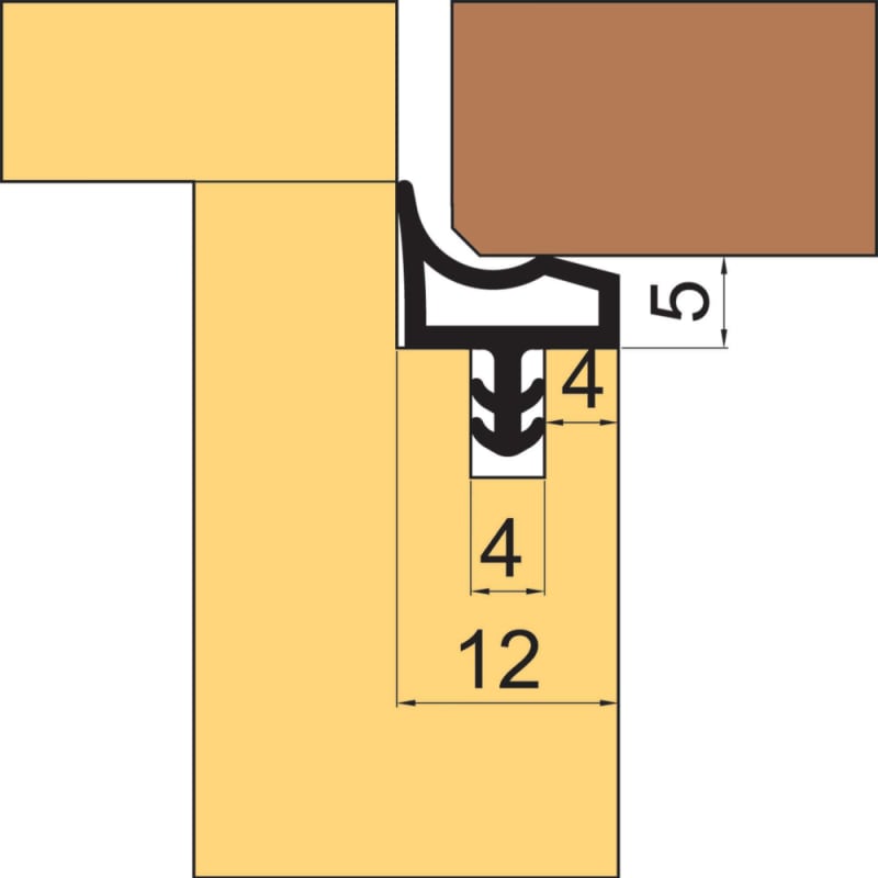 TRELLEBORG Dichtung L3002; Werkstoff: TSP-Flex; Befestigungsart: zum Einnuten; Einsatzbereich: Zimmertür; Basis: Dichtung; Farbe: braun; Falzbreite: 12 mm; Nutbreite: 4 mm; Profilform: Flügelfalz; Ans