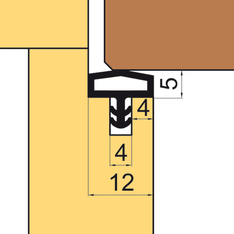 TRELLEBORG, Zimmertür-Dichtung, Modellnummer: L8001, Werkstoff: TSP-Last, Farbe: weiß, Befestigungsart: zum Einnuten, Falzbreite: 12 mm, Profilform: Flügelfalz, Nutbreite: 4 mm, Anschlagluft: 5 mm, Hä