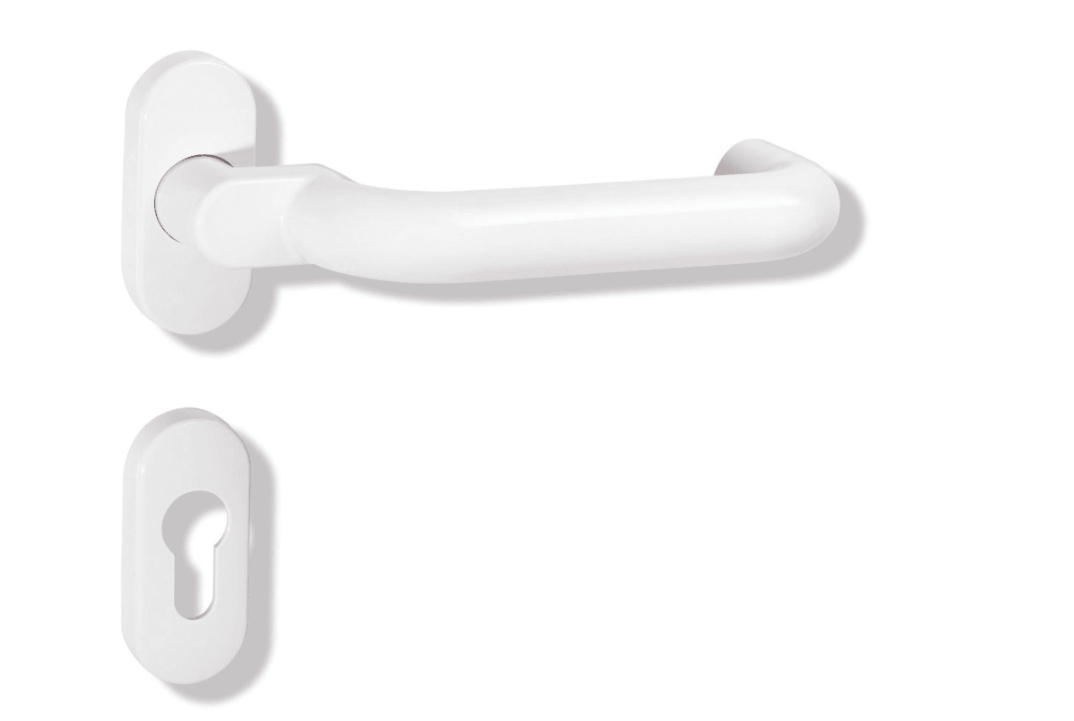 HEWI Drückerlochteil 114.23GKRLT; Produkttyp: Drückerlochteil; Produkttyp (Hersteller): Türdrückerlochteil; Material: Kunststoff; Ausführung Türdrücker: mit Stahlkern; Form: gekröpft,U-Form; Durchmess