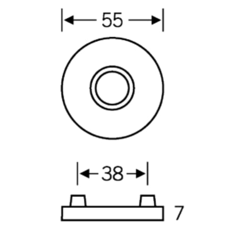 Drückerrosette aus Aluminium, verdeckt verschraubt, 55 mm Durchmesser. Mit fest/drehbarem Gleitlager.