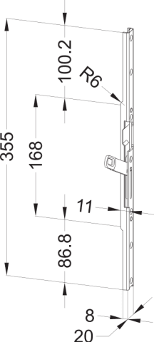 WINKHAUS, Türrahmen-Profilschließblech, Modell: STV, Modellnummer: U20-H11, DIN-Richtung: DIN Links, Material: Stahl, Schließblechbreite: 20 mm, Schließblechausführung: kantig, Ergänzung: mit Türfänge