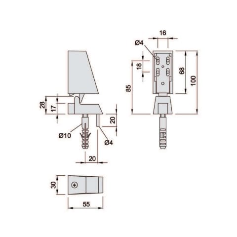 KWS, Objekttür-Türfeststeller, Ausführung: mit manueller Rastung, mit Montagezubehör, Modellnummer: 1013, Befestigungsart: zum Aufschrauben, Montageart: Bodenbefestigung, Material: Aluminium, Farbton: