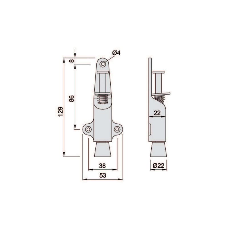 KWS Türfeststeller 1024; Ausführung: mit Gummistopfen,mit Tretbolzen,mit Klemmplatte; Material: Stahl; Hub: 25mm; Material Tretbolzen: Stahl; Einsatzbereich: Objekttür; Basis: Türfeststeller; Befestig