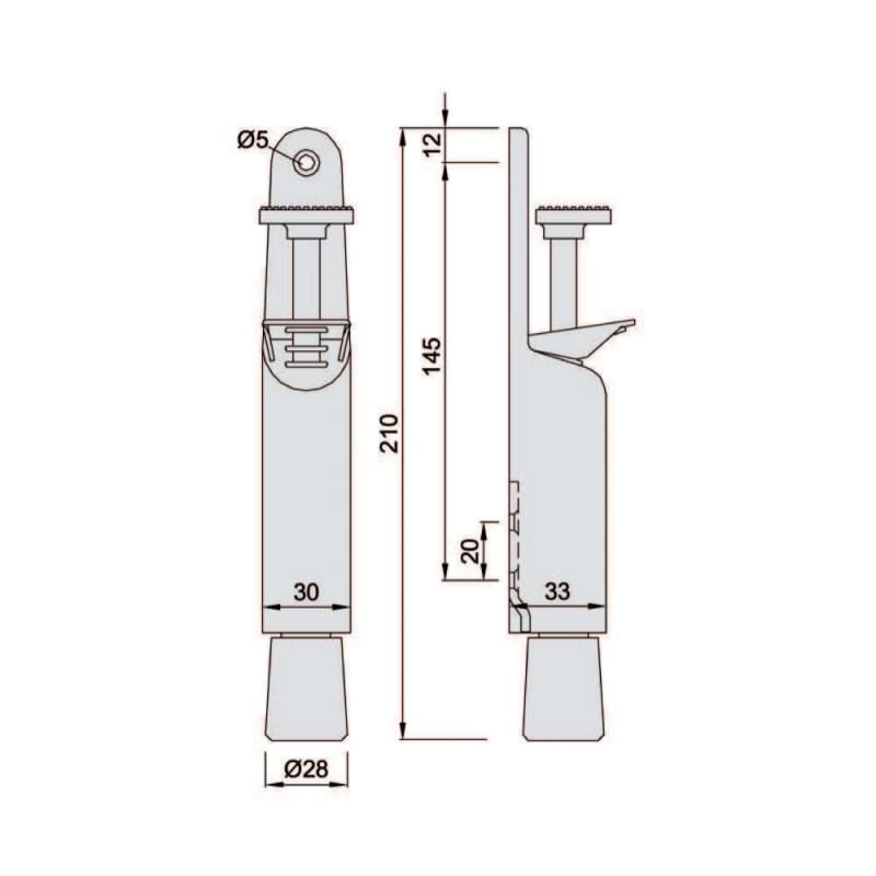 KWS, Objekttür-Türfeststeller, Ausführung: mit Tretbolzen, mit Gummistopfen, mit Konterfeder, Modellnummer: 1032, Befestigungsart: zum Aufschrauben, Material: Stahl, Farbton: dunkelbraun, Oberfläche: