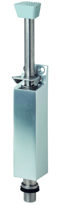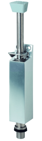KWS Türfeststeller 1041; Ausführung: mit Tretbolzen,mit Bodenbuchse,mit Klemmplatte; Material: Aluminium; Hub: 90mm; Material Tretbolzen: Edelstahl; Einsatzbereich: Objekttür; Basis: Türfeststeller; B