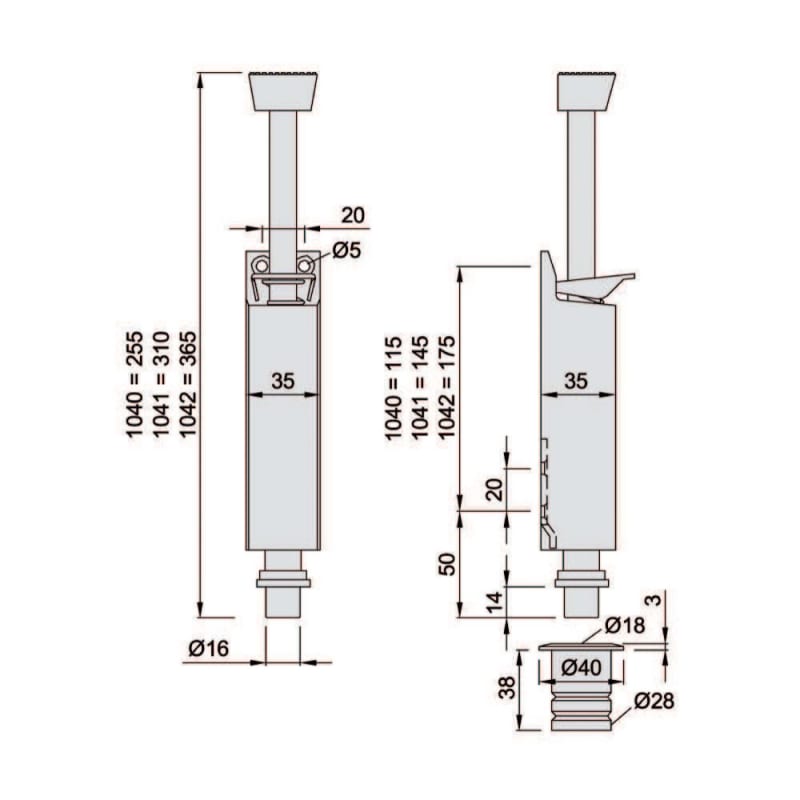 KWS Türfeststeller 1041; Ausführung: mit Tretbolzen,mit Bodenbuchse,mit Klemmplatte; Material: Aluminium; Hub: 90mm; Material Tretbolzen: Edelstahl; Einsatzbereich: Objekttür; Basis: Türfeststeller; Befestigungsart: zum Aufschrauben; DIN-Richtung: links/rechts verwendbar; Breite: 35mm; Länge: 310mm; Türgewicht max.: 100kg; Farbton: silberfarbig; Farbe Gummi: grau; Oberfläche: einbrennlackiert; Tiefe: 35mm; Schraublochdurchmesser: 5mm; Anzahl Schraublöcher: 2St.