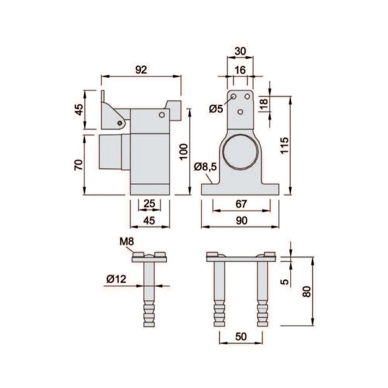 KWS Türfeststeller 1051; Ausführung: mit Fanghaken,mit Steindolle,mit federndem Gummipuffer; Material: Aluminium; Material Rollkloben: Edelstahl; Farbton Rollkloben: edelstahl; Einsatzbereich: Objekttür; Basis: Türfeststeller; Befestigungsart: zum Einmauern; Breite: 90mm; Höhe: 100mm; Länge: 92mm; Farbton: silberfarbig; Farbe Gummi: schwarz; Oberfläche: einbrennlackiert; Türgewicht max.: 100kg