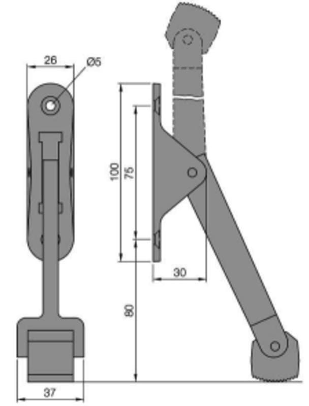KWS, Objekttür-Türfeststeller, Ausführung: mit herabklappenden Hebel, mit Gummipuffer, Modellnummer: 1060, Befestigungsart: zum Aufschrauben, Material: Aluminium, Farbton: silberfarbig, Oberfläche: el