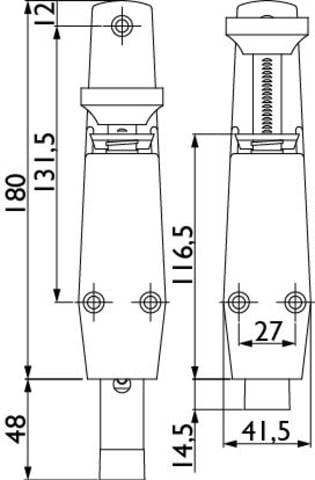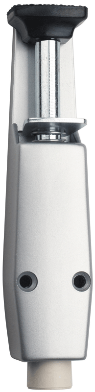 Türfeststeller 6712 / 180 mm, mit weißem Gummipuffer, 33 mm Hub, Anschraubplatte 180 x 42 mm, (ohne Befestigungsmaterial), Oberfl. F1 (Silberfarben eloxiert)