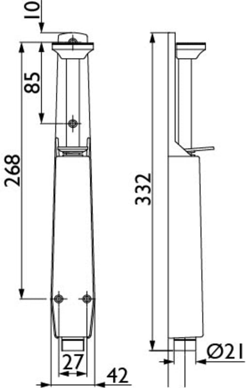 Türfeststeller 6712 / 330 mm, mit weißem Gummipuffer, 95 mm Hub, Anschraubplatte 330 x 42 mm, (ohne Befestigungsmaterial), Oberfl. F1 (Silberfarben eloxiert)