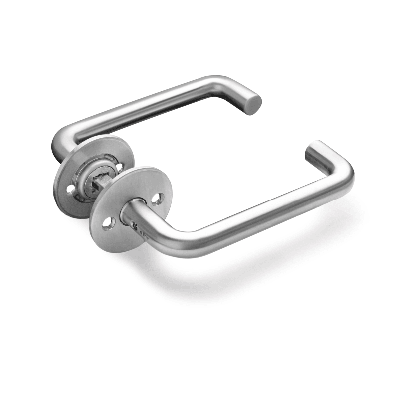 Knud Holscher Kollektion, Türdrücker 14U Paar, 8x8mm, massive Rosette, cc 30mm, 33-59mm. Hergestellt aus hochwertigem, rostfreiem Edelstahl AISI 316, der vor starker Korrosion schützt. Einzigartiges Kugellagersystem für eine außergewöhnlich lange Lebensdauer. Zertifiziert nach EN 1906 bis 47-B1140U. 20 Jahre Garantie.