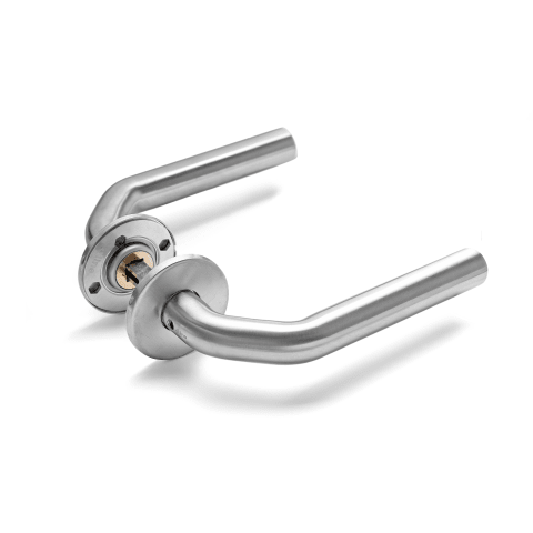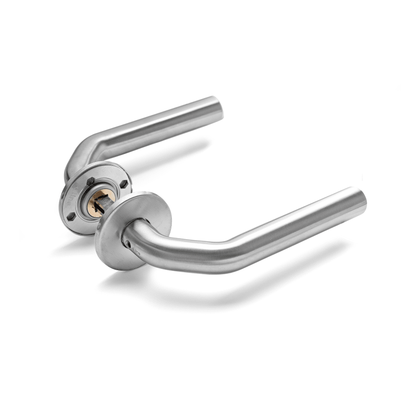 Knud Holscher Kollektion, Drücker 16LF Paar, 8x8mm, Schnappdeckel, cc 30/38mm, 33-44mm. Gefertigt aus hochwertigem, rostfreiem Edelstahl AISI 316, der vor starker Korrosion schützt. Einzigartiges Kugellagersystem für eine außergewöhnlich lange Lebensdauer. Zertifiziert nach EN 1906 bis 47-B1140U. Brandgeprüft nach EN 1634. 20 Jahre Garantie.