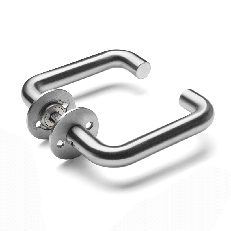Knud Holscher Kollektion, Drücker 16U Paar, 8x8mm, massive Rosette, cc 30 mm, 33-59mm. Hergestellt aus hochwertigem, rostfreiem Edelstahl AISI 316, der vor starker Korrosion schützt. Einzigartiges Kugellagersystem für eine außergewöhnlich lange Lebensdauer. Zertifiziert nach EN 1906 bis 47-B1140U. 20 Jahre Garantie.