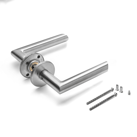 Knud Holscher Kollektion, Drücker 19FF schräges Paar, 8x8mm, Schnappdeckel, cc 30/38mm, 33-59mm. Gefertigt aus hochwertigem, rostfreiem Edelstahl AISI 316, der vor starker Korrosion schützt. Einzigartiges Kugellagersystem für eine außergewöhnlich lange Lebensdauer. Zertifiziert nach EN 1906 bis 47-B1140U. Brandgeprüft nach EN 1634. 20 Jahre Garantie.