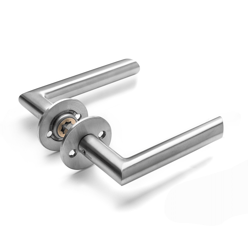 Knud Holscher Kollektion, Drücker 19FF schräges Paar, 8x8mm, massiv rosa, cc 30mm, 33-59mm. Hergestellt aus hochwertigem, rostfreiem Edelstahl AISI 316, der vor starker Korrosion schützt. Einzigartiges Kugellagersystem für eine außergewöhnlich lange Lebensdauer. Zertifiziert nach EN 1906 bis 47-B1140U. 20 Jahre Garantie.