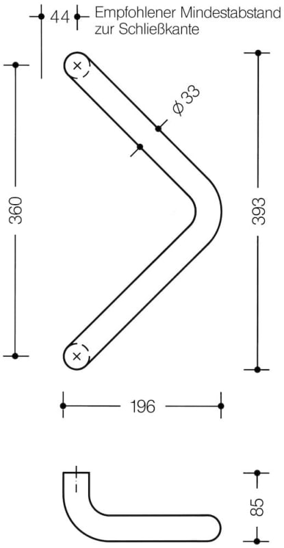 HEWI Griff, Lochteil,ø33mm, a=360mm reinweiß
