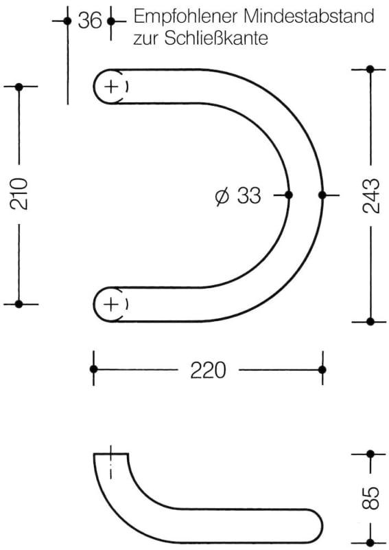 HEWI Griff, Lochteil,ø33mm, a=210mm tiefschwarz