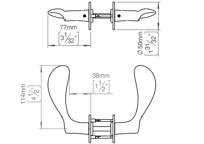 Meesenburg Artikelbezeichnung: TÜRGRIFF AJ L ED 33-59 MASSIV CC30 PVD MESSING (124054P3030)