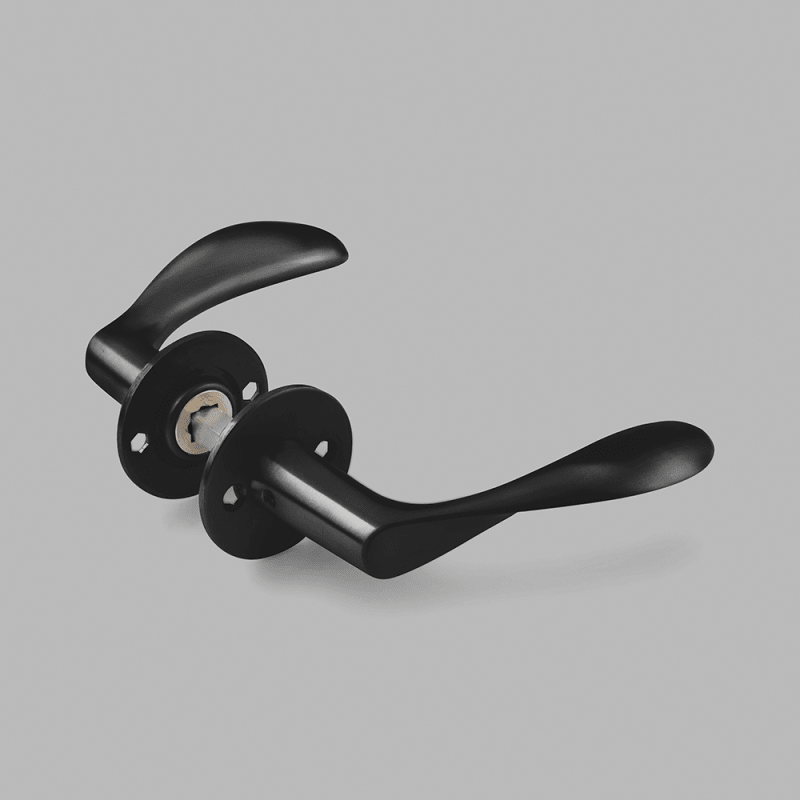 Kollektion Arne Jacobsen, Türdrücker AJ großes Paar, 8x8mm, massive Rosette, cc 30 mm, 33-59mm aus satiniertem Edelstahl AISI 304. Zertifiziert nach EN 1906 bis 47-B1140U. 20 Jahre Garantie.