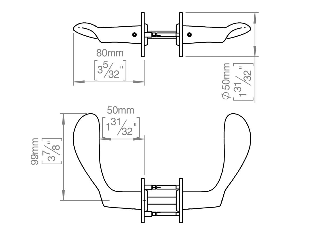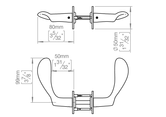 Kollektion Arne Jacobsen, Drücker AJ kleines Paar, 8x8mm, massive Rosette, cc 30 mm, 33-59mm aus poliertem Messing. Zertifiziert nach EN 1906 bis 47-B1140U. 20 Jahre Garantie.