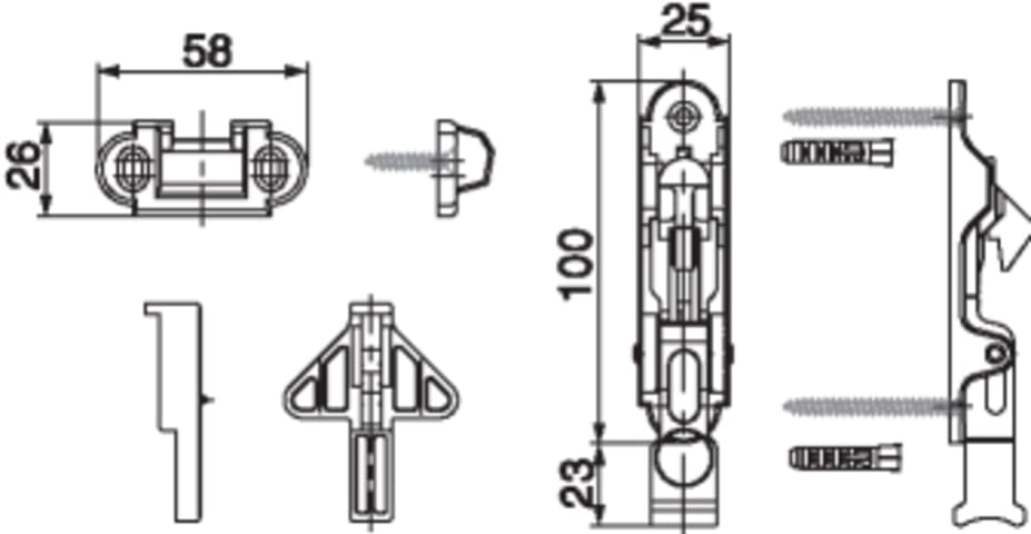 Türladenhalter mit kurzer Verriegelungskonsole mit Schrauben und Dübel schwarz-S