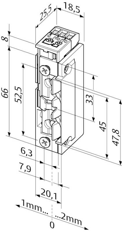 Modell mit bipolarer Schutzdiode. Rückmeldekontakt als potentialfreier Wechselkontakt. Dieser wird von der Schlossfalle betätigt.