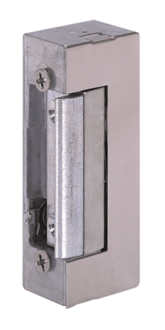 effeff, Türrahmen-Elektro-Türöffner, Modellnummer: 17E, Ausführung: mit Flachschließblech, mit Riegelausschnitt, Bauform: symmetrisch, Ergänzung: mit verstellbarer Falle, DIN-Richtung: DIN Links-Rechts, Einbaulage: senkrecht, waagerecht, Entriegelung: mechanisch, Funktion: Arbeitsstrom, Schließblechausführung: kantig, Schließblechbreite: 25 mm, Schließblechlänge: 250 mm, Schließblechstärke: 3 mm, Material Schließblech: Stahl, Farbton Schließblech: goldfarbig, Oberfläche Schließblech: beschichtet, Befestigungsart: zum Einlassen, Material Gehäuse: Zinkdruckguss, Einzelteilmaterial Falle: Zinkdruckguss, Einzelteilmaterial Aufschraubstück: Zinkdruckguss, Öffnerbreite: 20,5 mm, Öffnerhöhe: 75 mm, Öffnertiefe: 28 mm, Spannung min.: 6 V, Spannung max.: 12 V, Spannungsart: AC/DC, Stromanschluss: klemmbar, steckbar, Stromart: AC/DC, Stromaufnahme AC bei 6V: 550 mA, Stromaufnahme AC bei 12V: 1100 mA, Stromaufnahme DC bei 6V: 660 mA, Stromaufnahme DC bei 12V: 1300 mA, Fallenvorlast AC max. bei 6V: 80 N, Fallenvorlast AC max. bei 12V: 150 N, Fallenvorlast DC max. bei 6V: 10 N, Fallenvorlast DC max. bei 12V: 50 N, Aufbruchfestigkeit: 3500 N, Betriebstemperatur min.: -15 °C, Betriebstemperatur max.: 40 °C, Nennwiderstand: 9,1 O, Türart: Abschlusstür, Türausprägung: Türe stumpf, Türflügelanzahl: einflügelig, Rahmenwerkstoff: Holz, Aluminium, Kunststoff, Zulassung: entsprechende Standard Zulassung