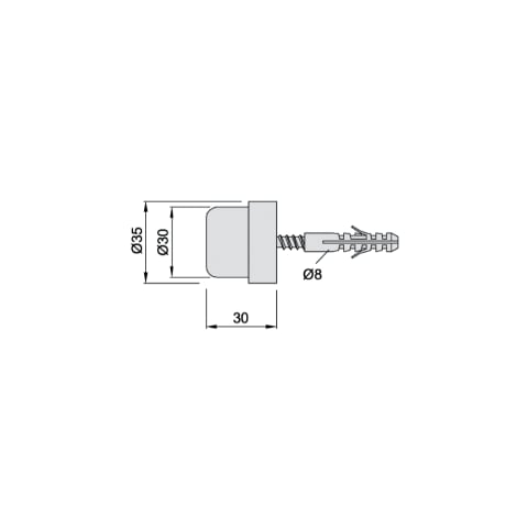KWS Wandpuffer 2006; Material: Aluminium; Befestigungsart: verdeckt verschraubt; Befestigungstechnik: ohne Verdrehsicherung; Einsatzbereich: Haustür; Basis: Wandpuffer; Ausführung: mit einseitigem Gum