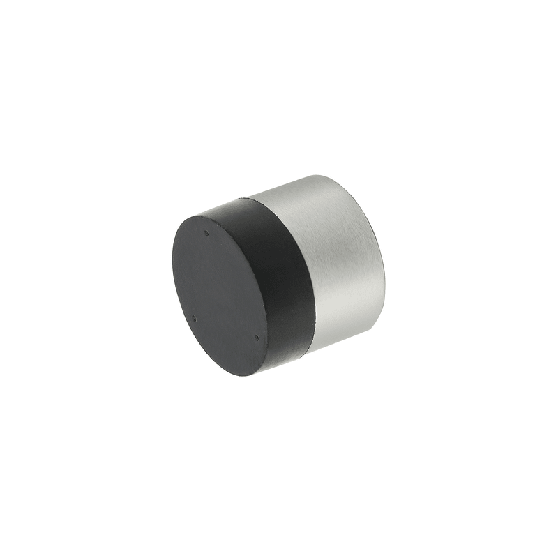 Wandtürpuffer mit Dübel und Schraube aus rostfreiem Material, Puffer schwarz, zugelassen bis 80 kg Türgewicht. Auch mit weißem Gummi lieferbar.