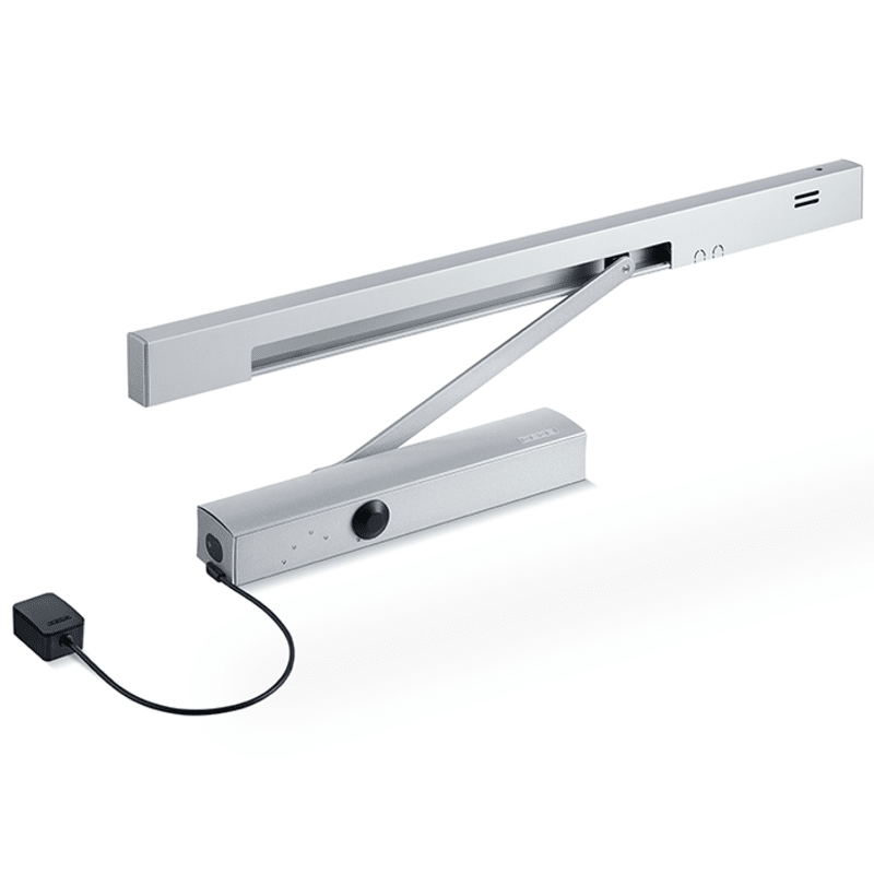 Stufenlos von vorn einstellbare Schließkraft. Optische Größenanzeige der Schließkraft sorgt für die richtige Einstellung. Schließgeschwindigkeit über Ventil von vorn einstellbar. Endschlag über Ventil von vorn einstellbar. Elektrische Freilauffunktion. Türschließer für rechts und links angeschlagene Türen verwendbar. Netzteil für 230 V Versorgungsspannung. Rauchschalter mit Alarmschwellennachführung, Verschmutzungsanzeige und nicht sichtbaren Auslösetaster zum Testen. Zusätzliche Rauchschalter anschließbar. Höhenausgleich von +/- 2 mm möglich. Anwendungsbereiche: Feuer- und Rauchschutztüren. Rechte und linke Anschlagtüren. Anschlagtüren bis 1400 mm Flügelbreite. Türblattmontage Bandseite. Feststellanlagen mit integrierter Feststellung mit Freilauf. Barrierefreie Zugänge nach DIN 18040.