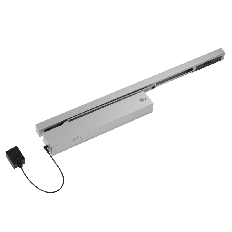 Der TS 99 FLR im Contur Design, für Türbreiten bis 1250 mm, ist eine Feststellvorrichtung mit Freilauffunktion ab einem Türöffnungswinkel >0°, die in Verbindung mit dem integriertem Rauchmelder als Feststellanlage eingesetzt wird. Bei diesem System ist die Tür durch die Freilauffunktion frei beweglich. Im Alarmfall oder bei Stromausfall wird die Tür vom Türschließer sicher geschlossen.