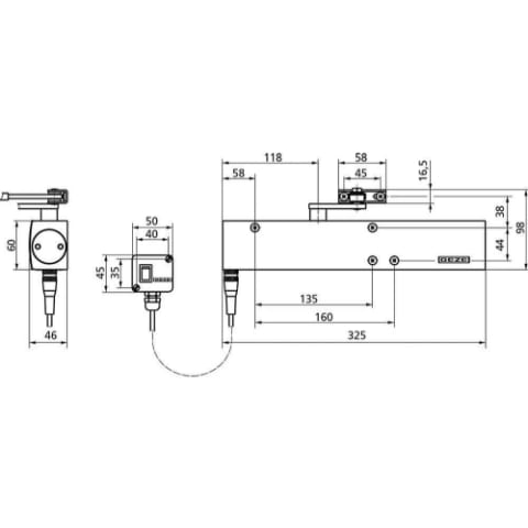 Gestängetürschließer für 1-flügelige Türen bis 1400 mm Flügelbreite, mit stufenloser elektrohydraulischer Feststellung nach EN 1155 von 80° bis 175°, für rechte und linke Anschlagtüren bis 1400 mm Flü