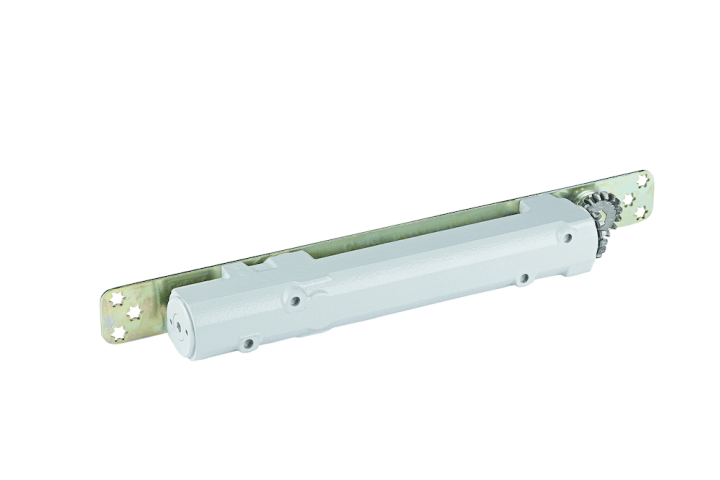 Im Türblatt und in der Zarge integrierter Gleitschienen-Türschließer nach DIN EN 1154 A, mit stark abfallenden Öffnungsmoment. Schließkraft stufenlos einstellbar, Größe EN 2-4 nach DIN EN 1154 A, maxi