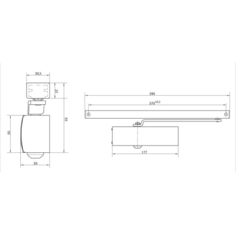 Gestängetürschließer für einflügelige Türen bis 1100 mm Flügelbreite, mit einstellbarer Schließgeschwindigkeit. Technische Daten: • Variable Schließkraft von EN3 oder EN4 durch Umdrehen des Lagerbock