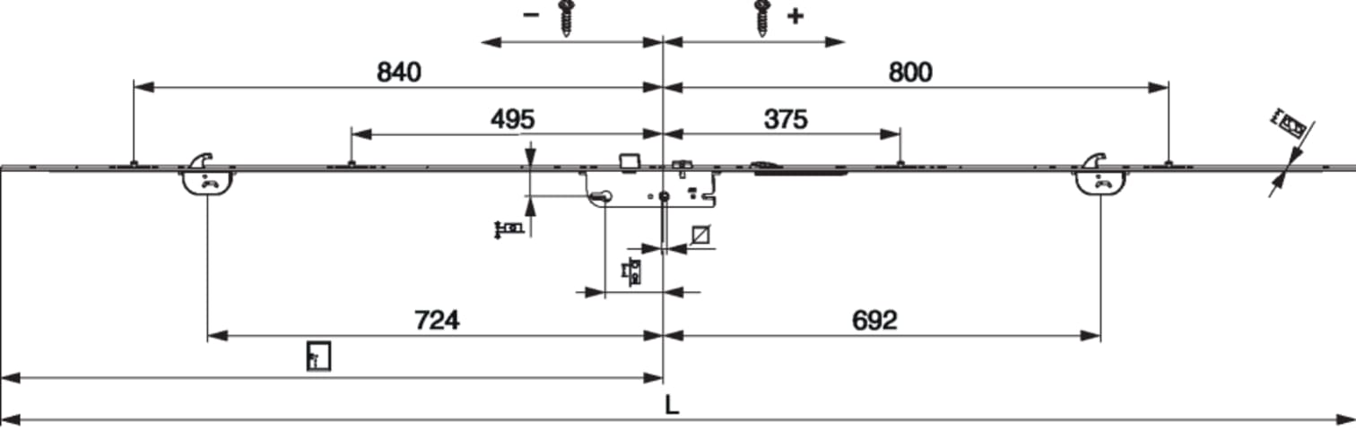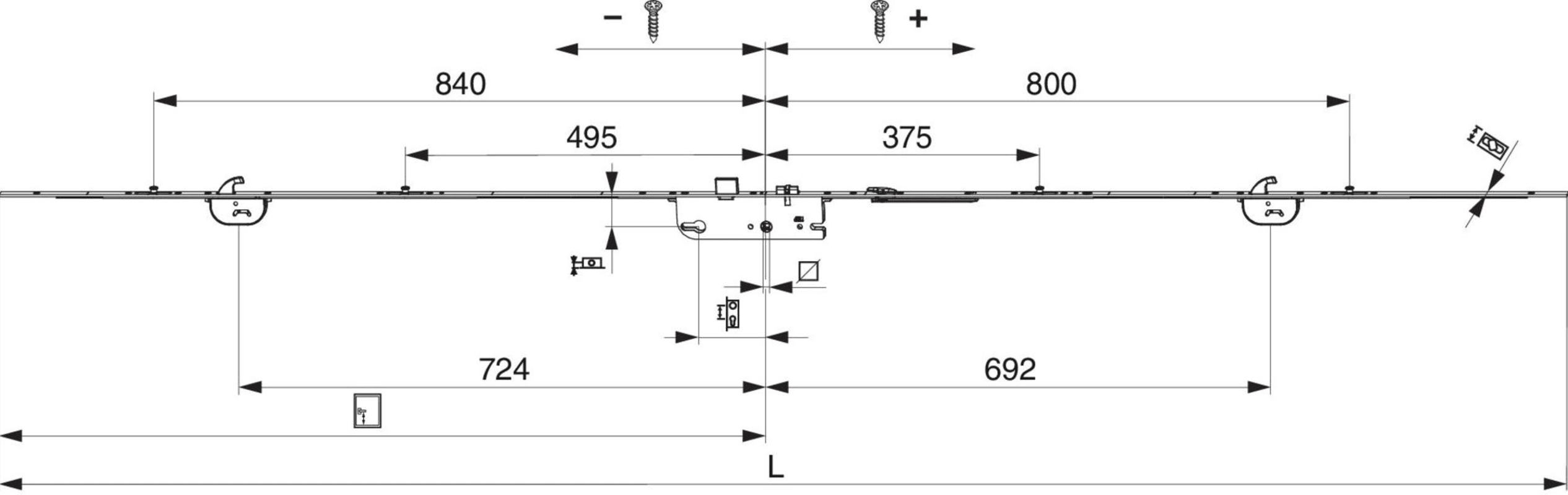 Türschloss G-TA E92 DM50 PZ 2 HO + 4 i.S. GM 1.050 silber VK8 F-2.150x16 verlängerbar PT