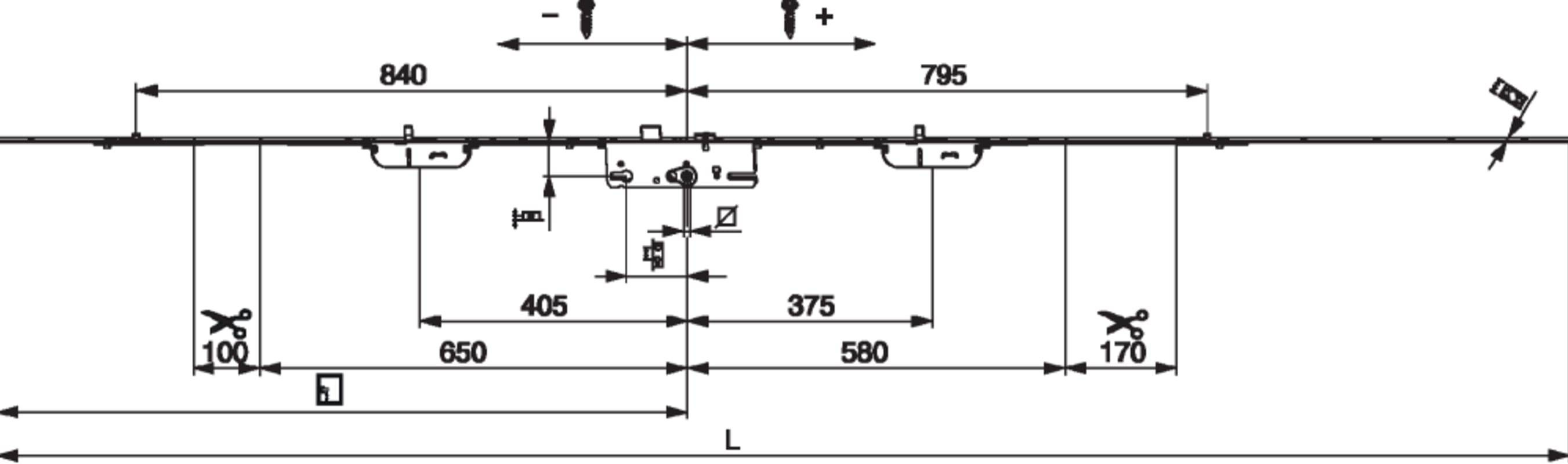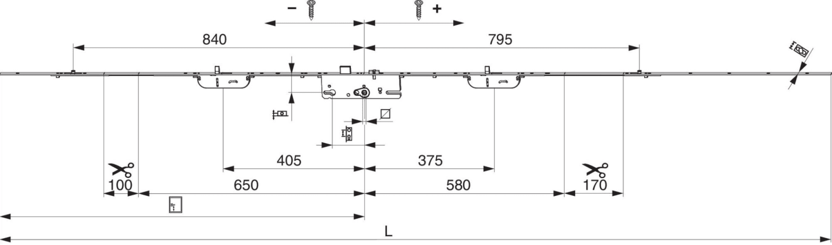 Türschloss G-TS E92 DM55 PZ 2 BO + 2 i.S. GM 1.050 silber VK8 F-2.400x16 verlängerbar PT-M