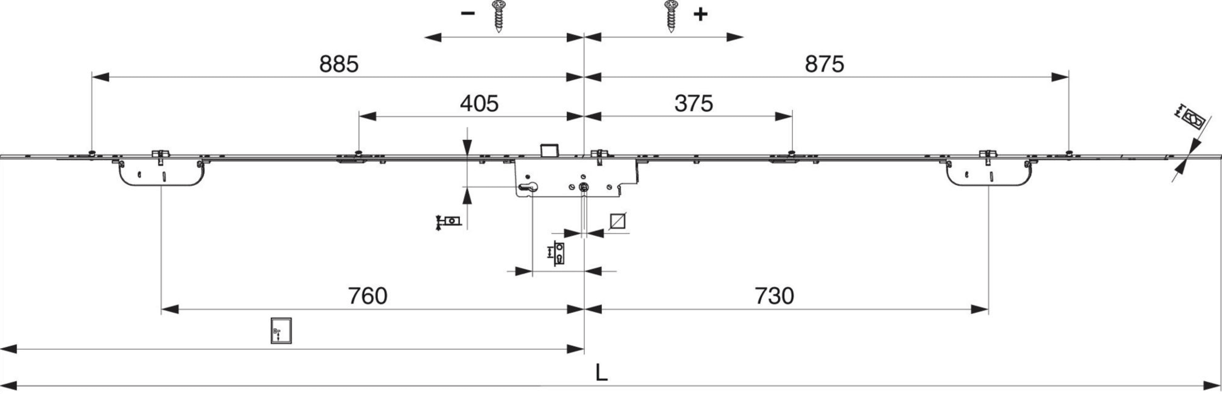 Türschloss Z-TF E92 DM55 PZ 2 MF + 4 i.S. GM 1.050 silber VK8 F-2.200x16 verlängerbar PT