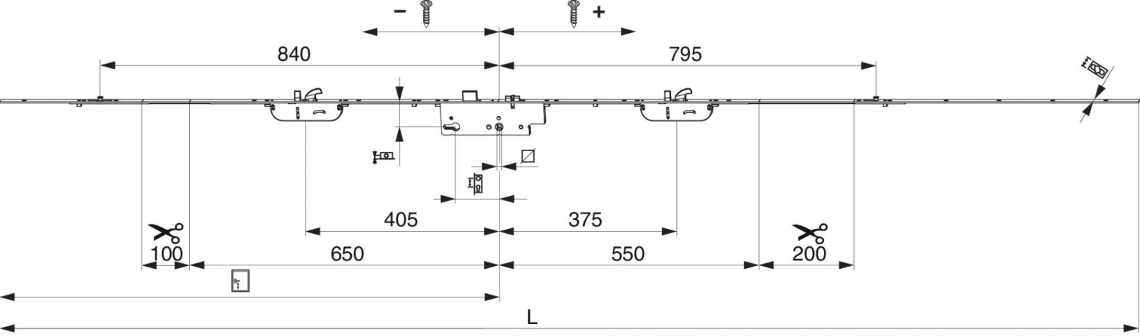 Türschloss Z-TS E92 DM45 PZ 2 HO-BO + 2 i.S. GM 1.050 silber VK8 F-2.400x16 verlängerbar PT-M