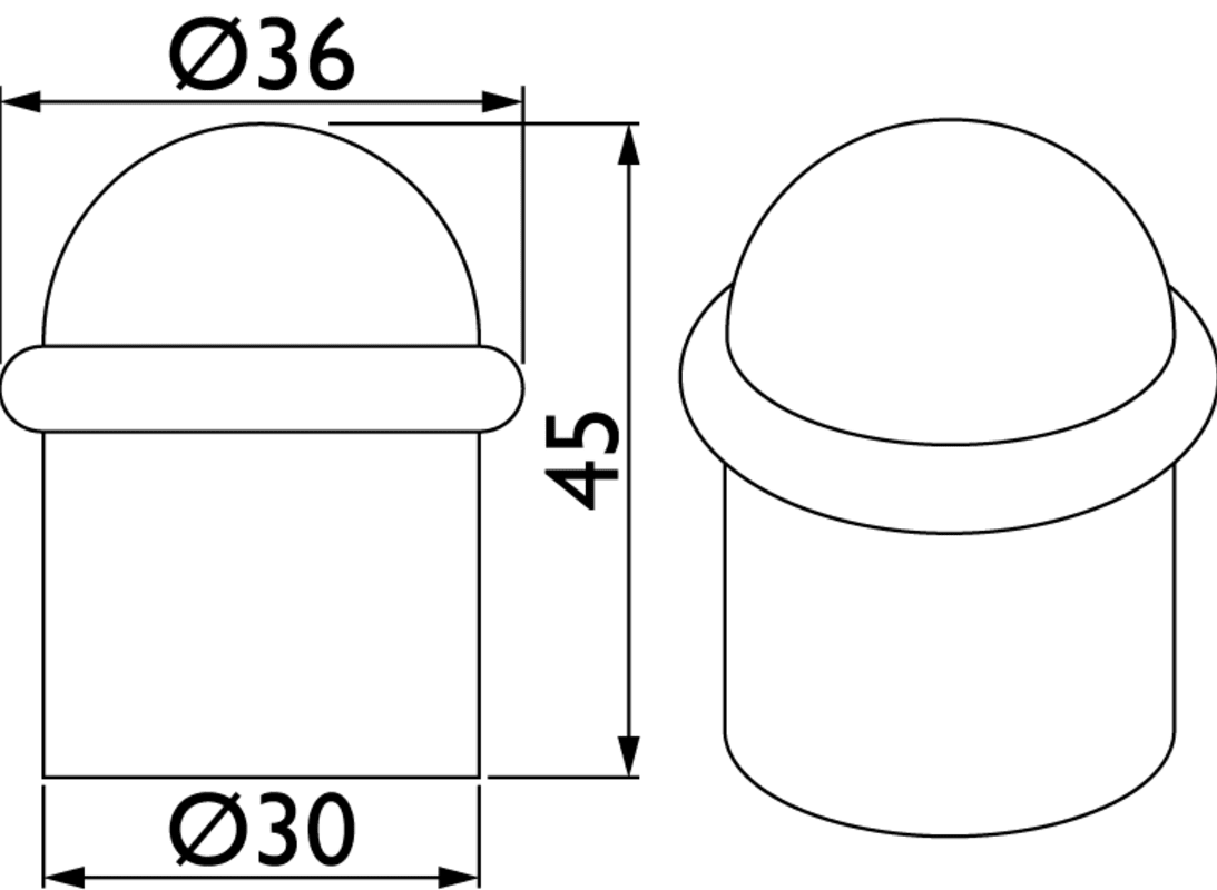 Türstopper 3695 TS, Ø 30/36 mm, Höhe 45 mm, mit Befestigungsschraube und Dübel, Oberfl. 01 (Messing poliert)
