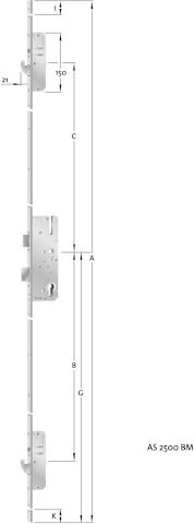 KFV Mehrfachverriegelung MFS AS2500SL-T0Q; Produkttyp: Mehrfachverriegelung; Produkttyp (Hersteller): Mehrfachverriegelung; Ausführung: Schlüsselbetätigt,mechanisch; Verriegelung: über Schließzylinder