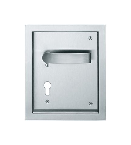FSB Turnhallenbeschlag 77 7949; Produkttyp: Turnhallenbeschlag; Produkttyp (Hersteller): Turnhallenbeschlag; Form: eckig; Material: Edelstahl; Befestigungsart: sichtbar verschraubt; Länge: 234 mm; Breite: 197 mm; Höhe: 25 mm; Einlasslänge: 200 mm; Einlassbreite: 162 mm; Einlasstiefe: 23 mm; Höhe Auflage/Blende: 2 mm; Einsatzbereich: Anschlagtür,Schiebetür; Türart: Vollblatt; Türwerkstoff: Holz; Ausführung: für Rosette; Farbe: grau; Farbton: edelstahl; Oberfläche: fein matt; DIN-Richtung: DIN Links; Vierkant: 9 mm; Lochung: ungelocht; Türstärke min.: 55 mm; Zulassung: für Rauchschutz,für Feuerschutz