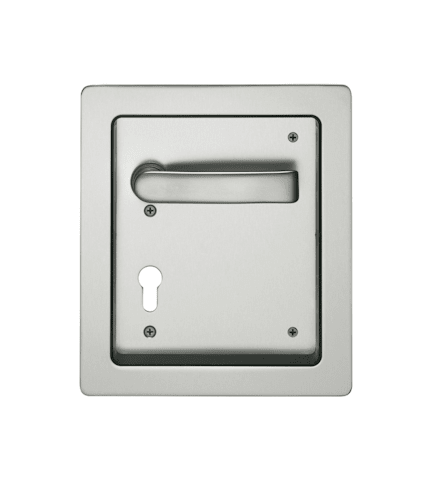 FSB Turnhallenbeschlag 77 7950; Produkttyp: Turnhallenbeschlag; Produkttyp (Hersteller): Turnhallenmuschel; Form: abgerundet; Material: Edelstahl; Befestigungsart: sichtbar verschraubt; Länge: 230 mm; Breite: 200 mm; Höhe: 25 mm; Einlasslänge: 207 mm; Einlassbreite: 177 mm; Einlasstiefe: 23 mm; Höhe Auflage/Blende: 2 mm; Einsatzbereich: Schiebetür,Anschlagtür; Türart: Vollblatt; Türwerkstoff: Holz; Ausführung: für Schild; Farbe: grau; Farbton: edelstahl; Oberfläche: fein matt; DIN-Richtung: DIN Links; Vierkant: 8 mm; Lochung: ungelocht; Befestigungsabstand (Länge): 145 mm; Türstärke min.: 55 mm