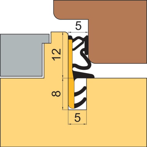 TRELLEBORG Flügelfalzdichtung L6050; Werkstoff: TSP-LAN; Befestigungsart: Nutbefestigung; Einsatzbereich: Fenster; Basis: Flügelfalzdichtung; Profilform: Flügelfalz; Farbton: rustikal-braun; Nutbreite: 5 mm; Falzhöhe: 12 mm; Anschlagluft: 5 mm; Härte min.: 20 kPa; Härte max.: 95 kPa; Temperaturbeständig min.: -40 °C; Temperaturbeständig max.: 80 °C; Lackverträglichkeit: konventionelle Lacke,Wasserlacke; Nuttiefe: 8 mm; Eigenschaft: UV-beständig,Ozonbeständig,Kältebeständig,alterungsbeständig