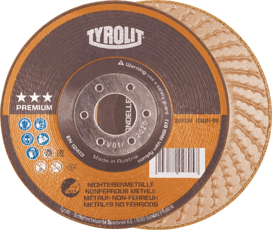 Schleifscheibe RONDELLER® für NE-Metalle• Hohe Schleifleistung und gute Standzeit • Einfache Montage ohne Stützteller und Spannmutter • Kein Zuschmieren für einen langanhaltend aggressiven Schliff