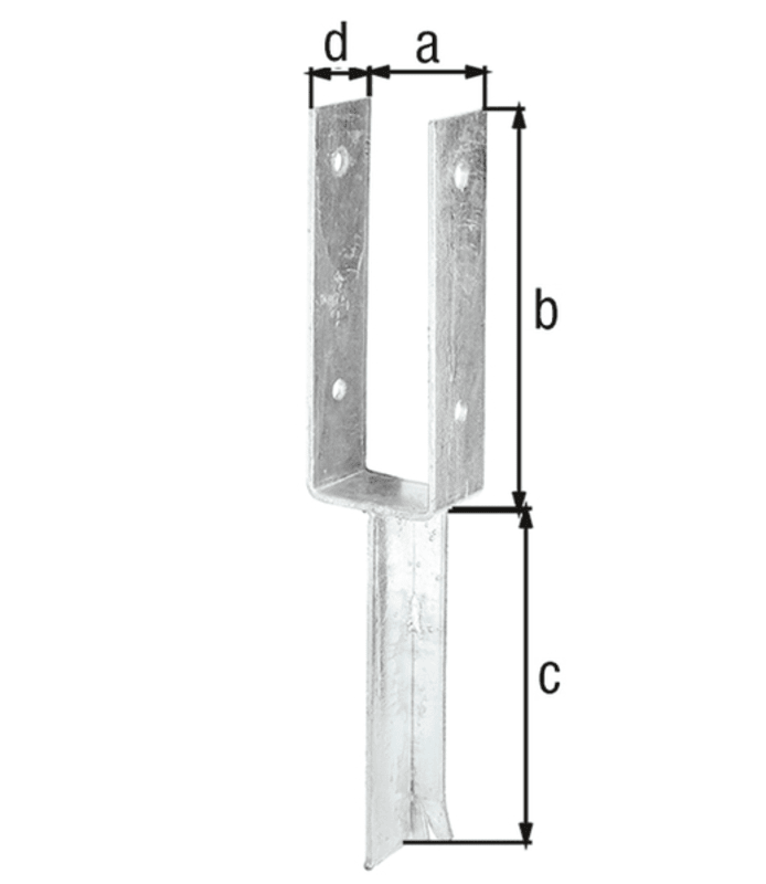 GAH Alberts Pfostenträger; Basis: Pfostenträger; Form: U-Form; Ausführung: mit Betonanker aus T-Eisen; Werkstoff: Stahl; Oberfläche: feuerverzinkt; Anwendungsbereich: Zäune; Befestigung: zum Einbetoni