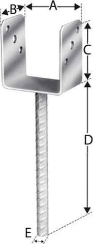 Pfostenträger, feuerverzinkt• Bewährte Import-Qualität • Mit geriffelter Steindolle • Je Seite 3 Löcher: Ø 10,5 mm Palettenmenge: 500 Stück.