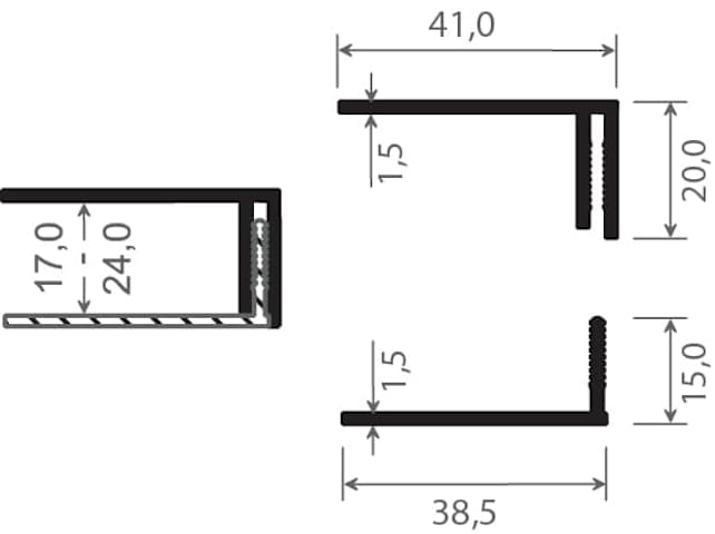 U-Profil zweiteilig 41x20 mm Lg. 6,00 m Weiß, VE: 60 m